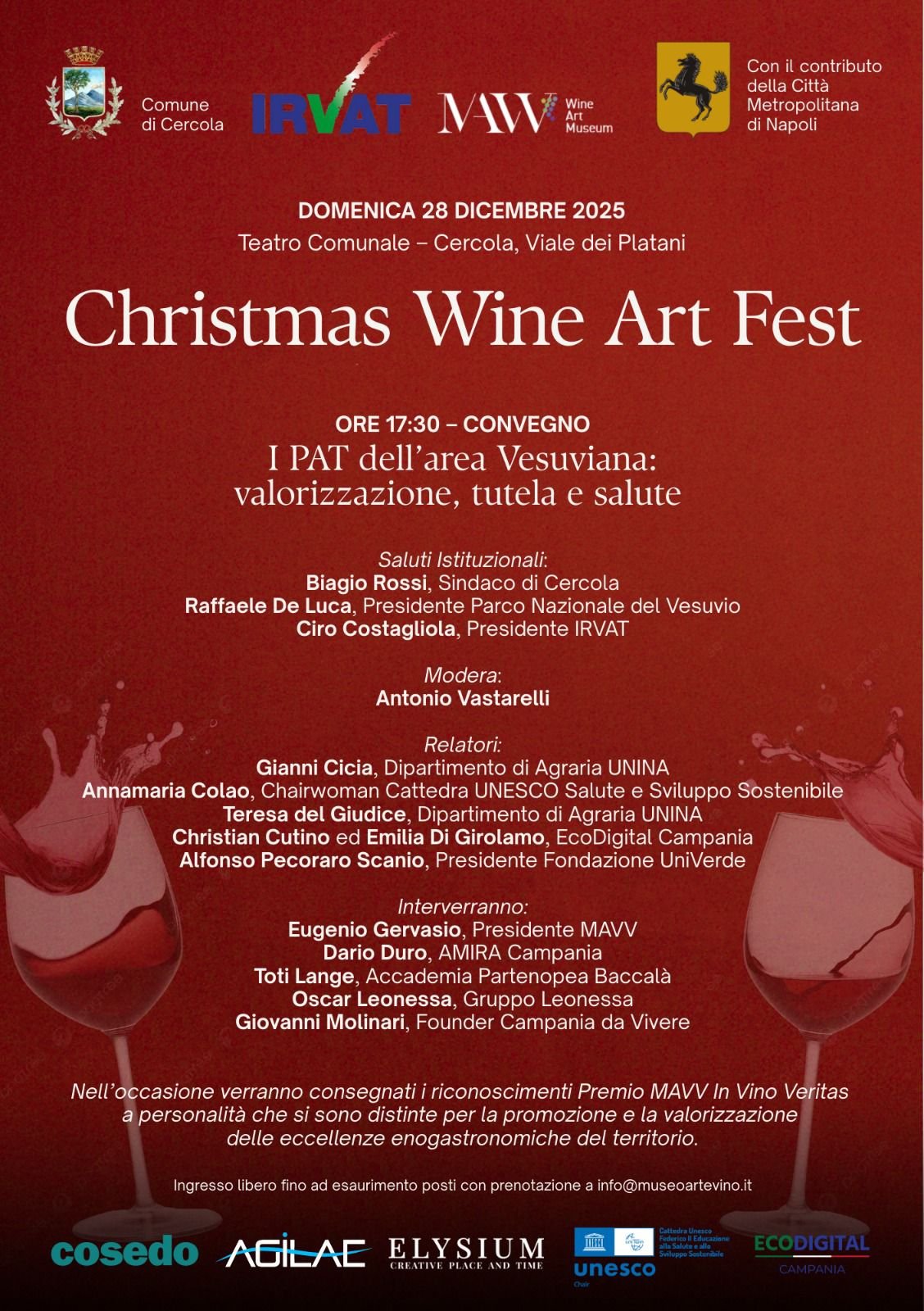 Domenica 28 dicembre, alle ore 17.30, nel Teatro Comunale di Cercola (in Viale dei Platani), si terrà il “Christmas Wine Art